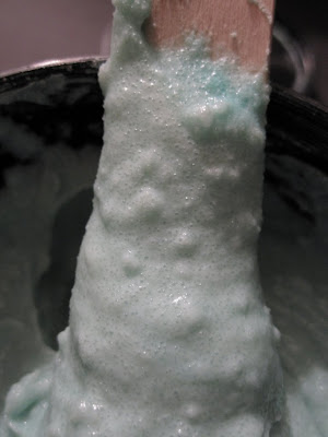 When you open it up, there's a blue layer of the exfoliating sea salt pieces sitting on top of the layer of white..everything else. You mix it up and it becomes what you see here: